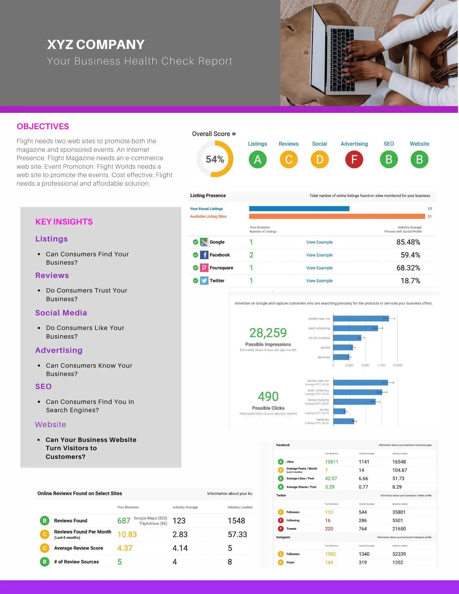 Is your business thriving online or could it use a boost? Our Business Health Check Report offers a comprehensive analysis of your online performance, highlighting areas for improvement and growth.